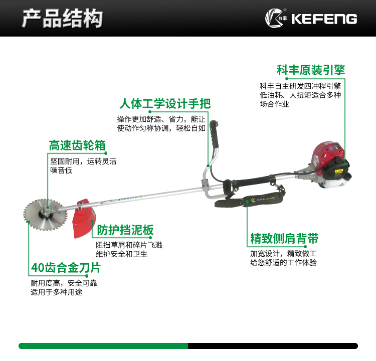 ■ 科豐四沖程引擎,低油耗,大扭矩適合多數(shù)場合作業(yè)。