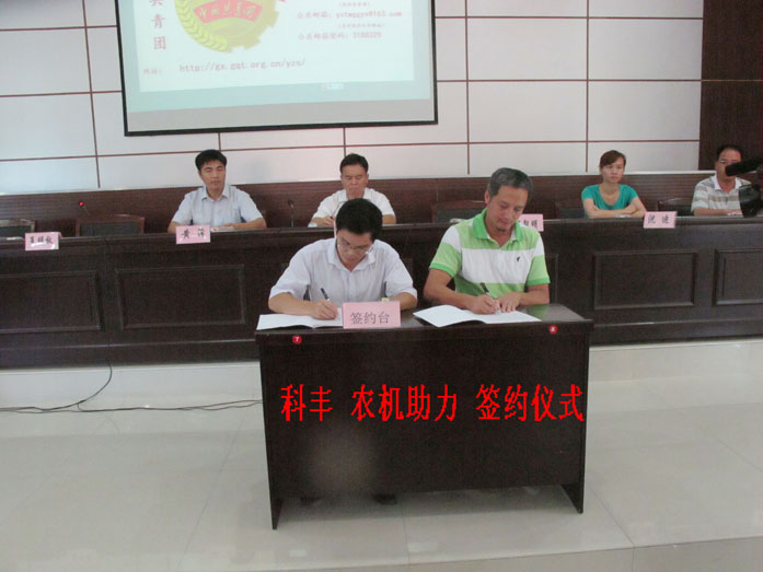 啟動(dòng)儀式上宜州團(tuán)市委和桂林高新區(qū)科豐機(jī)械有限責(zé)任公司共同簽訂了合作協(xié)議。宜州市農(nóng)機(jī)局開展農(nóng)業(yè)機(jī)械購(gòu)置國(guó)家補(bǔ)貼政策培訓(xùn),桂林高新區(qū)科豐機(jī)械有限責(zé)任公司進(jìn)行了農(nóng)機(jī)技術(shù)使用技術(shù)培訓(xùn)。啟動(dòng)儀式后,全體與會(huì)人員還現(xiàn)場(chǎng)觀摩了科豐公司農(nóng)機(jī)作業(yè)過(guò)程。